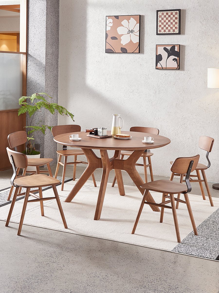 梦星魂纯榉木实木圆餐桌原木哑光漆 阳光餐椅2把 2把